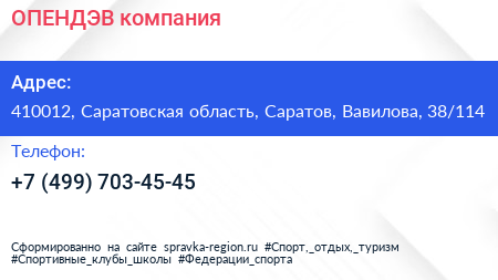 ОПЕНДЭВ, компания по адресу 410012, Саратовская область, Саратов, Вавилова, 38/114 в дальнейшем Организация, размещена в следующих категориях: