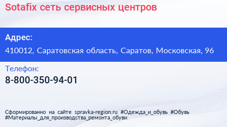 Sotafix, сеть сервисных центров по адресу 410012, Саратовская область, Саратов, Московская, 96 в дальнейшем Организация, размещена в следующих категориях: