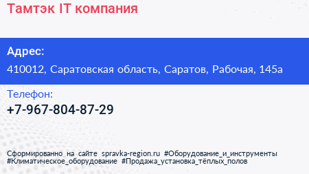 Тамтэк, IT-компания по адресу 410012, Саратовская область, Саратов, Рабочая, 145а в дальнейшем Организация, размещена в следующих категориях: