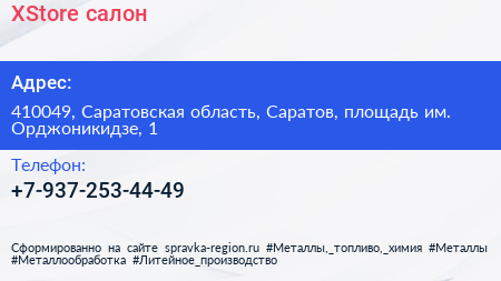 XStore, салон по адресу 410049, Саратовская область, Саратов, площадь им. Орджоникидзе, 1 в дальнейшем Организация, размещена в следующих категориях: