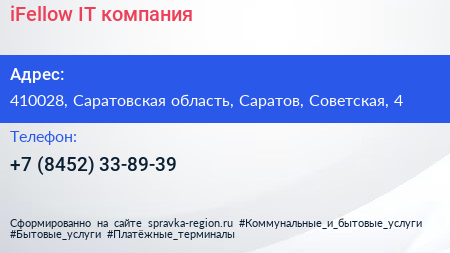 iFellow, IT-компания по адресу 410028, Саратовская область, Саратов, Советская, 4 в дальнейшем Организация, размещена в следующих категориях: