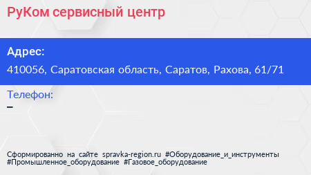 РуКом, сервисный центр по адресу 410056, Саратовская область, Саратов, Рахова, 61/71 в дальнейшем Организация, размещена в следующих категориях: