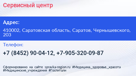 Сервисный центр по адресу 410002, Саратовская область, Саратов, Чернышевского, 203 в дальнейшем Организация, размещена в следующих категориях:
