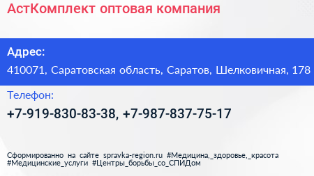 АстКомплект, оптовая компания по адресу 410071, Саратовская область, Саратов, Шелковичная, 178 в дальнейшем Организация, размещена в следующих категориях:
