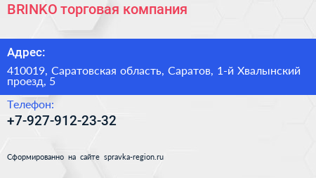 BRINKO, торговая компания по адресу 410019, Саратовская область, Саратов, 1-й Хвалынский проезд, 5 в дальнейшем Организация, размещена в следующих категориях: