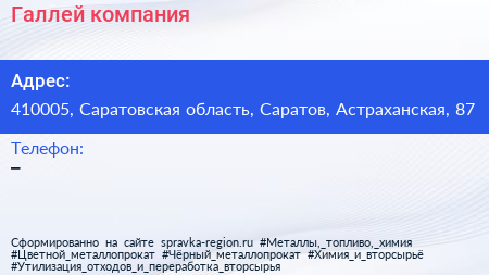 Галлей, компания по адресу 410005, Саратовская область, Саратов, Астраханская, 87 в дальнейшем Организация, размещена в следующих категориях: