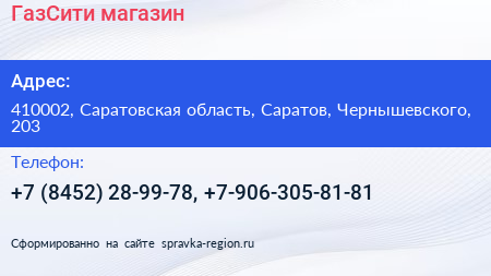 ГазСити, магазин по адресу 410002, Саратовская область, Саратов, Чернышевского, 203 в дальнейшем Организация, размещена в следующих категориях: