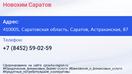 Новохим Саратов по адресу 410005, Саратовская область, Саратов, Астраханская, 87 в дальнейшем Организация, размещена в следующих категориях: