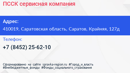 ПССК, сервисная компания по адресу 410019, Саратовская область, Саратов, Крайняя, 127д в дальнейшем Организация, размещена в следующих категориях: