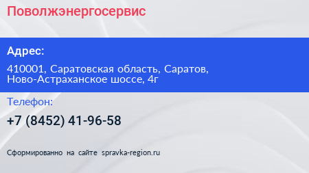 Поволжэнергосервис по адресу 410001, Саратовская область, Саратов, Ново-Астраханское шоссе, 4г в дальнейшем Организация, размещена в следующих категориях: