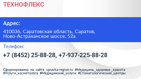 ТЕХНОФЛЕКС по адресу 410036, Саратовская область, Саратов, Ново-Астраханское шоссе, 52а в дальнейшем Организация, размещена в следующих категориях: