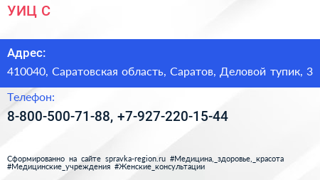 УИЦ С по адресу 410040, Саратовская область, Саратов, Деловой тупик, 3 в дальнейшем Организация, размещена в следующих категориях: