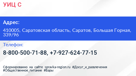 УИЦ С по адресу 410005, Саратовская область, Саратов, Большая Горная, 339/96 в дальнейшем Организация, размещена в следующих категориях:
