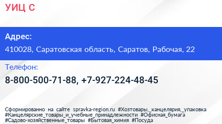 УИЦ С по адресу 410028, Саратовская область, Саратов, Рабочая, 22 в дальнейшем Организация, размещена в следующих категориях: