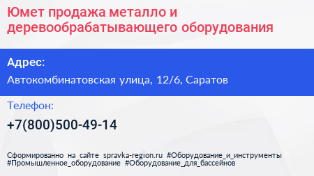Юмет - продажа металло и деревообрабатывающего оборудования по адресу Автокомбинатовская улица, 12/6, Саратов в дальнейшем Организация, размещена в следующих категориях: