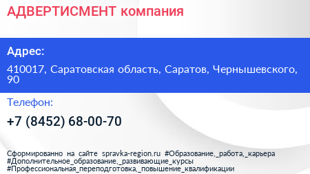 АДВЕРТИСМЕНТ, компания по адресу 410017, Саратовская область, Саратов, Чернышевского, 90 в дальнейшем Организация, размещена в следующих категориях: