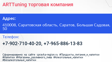 ARTTuning, торговая компания по адресу 410008, Саратовская область, Саратов, Большая Садовая, 50 в дальнейшем Организация, размещена в следующих категориях: