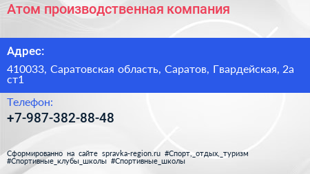 Атом, производственная компания по адресу 410033, Саратовская область, Саратов, Гвардейская, 2а ст1 в дальнейшем Организация, размещена в следующих категориях: