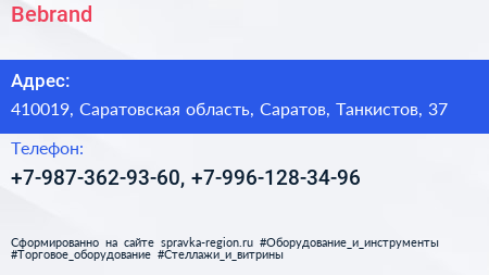 Bebrand по адресу 410019, Саратовская область, Саратов, Танкистов, 37 в дальнейшем Организация, размещена в следующих категориях: