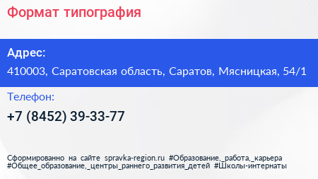 Формат, типография по адресу 410003, Саратовская область, Саратов, Мясницкая, 54/1 в дальнейшем Организация, размещена в следующих категориях: