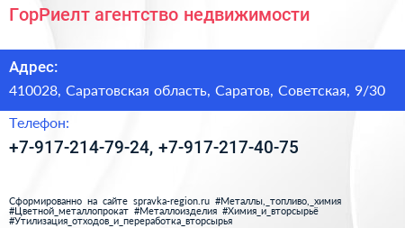 ГорРиелт, агентство недвижимости по адресу 410028, Саратовская область, Саратов, Советская, 9/30 в дальнейшем Организация, размещена в следующих категориях: