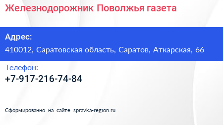 Железнодорожник Поволжья, газета по адресу 410012, Саратовская область, Саратов, Аткарская, 66 в дальнейшем Организация, размещена в следующих категориях:
