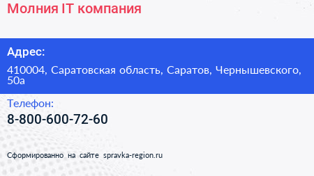 Молния, IT-компания по адресу 410004, Саратовская область, Саратов, Чернышевского, 50а в дальнейшем Организация, размещена в следующих категориях: