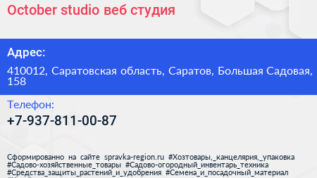 October-studio, веб-студия по адресу 410012, Саратовская область, Саратов, Большая Садовая, 158 в дальнейшем Организация, размещена в следующих категориях: