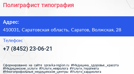 Полиграфист, типография по адресу 410031, Саратовская область, Саратов, Волжская, 28 в дальнейшем Организация, размещена в следующих категориях: