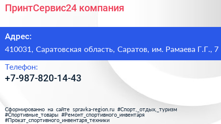 ПринтСервис24, компания по адресу 410031, Саратовская область, Саратов, им. Рамаева Г.Г., 7 в дальнейшем Организация, размещена в следующих категориях:
