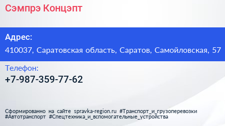 Сэмпрэ Концэпт по адресу 410037, Саратовская область, Саратов, Самойловская, 57 в дальнейшем Организация, размещена в следующих категориях: