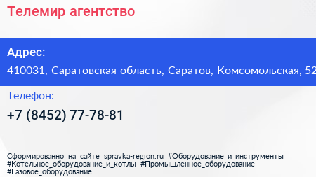 Телемир, агентство по адресу 410031, Саратовская область, Саратов, Комсомольская, 52 в дальнейшем Организация, размещена в следующих категориях: