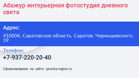Абажур, интерьерная фотостудия дневного света по адресу 410004, Саратовская область, Саратов, Чернышевского, 59 в дальнейшем Организация, размещена в следующих категориях: