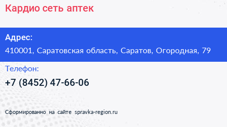 Кардио, сеть аптек по адресу 410001, Саратовская область, Саратов, Огородная, 79 в дальнейшем Организация, размещена в следующих категориях: