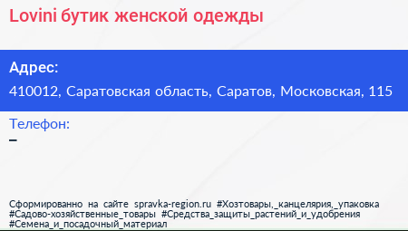 Lovini, бутик женской одежды по адресу 410012, Саратовская область, Саратов, Московская, 115 в дальнейшем Организация, размещена в следующих категориях: