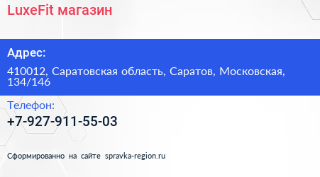 LuxeFit, магазин по адресу 410012, Саратовская область, Саратов, Московская, 134/146 в дальнейшем Организация, размещена в следующих категориях: