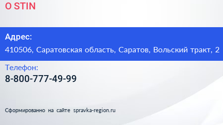 O`STIN по адресу 410506, Саратовская область, Саратов, Вольский тракт, 2 в дальнейшем Организация, размещена в следующих категориях: