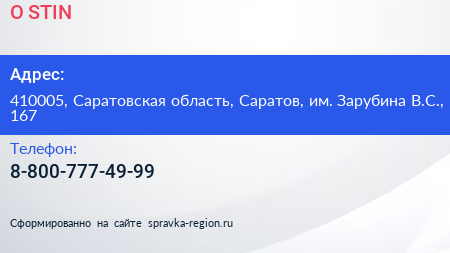 O`STIN по адресу 410005, Саратовская область, Саратов, им. Зарубина В.С., 167 в дальнейшем Организация, размещена в следующих категориях:
