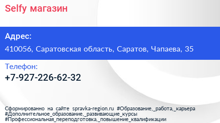Selfy, магазин по адресу 410056, Саратовская область, Саратов, Чапаева, 35 в дальнейшем Организация, размещена в следующих категориях: