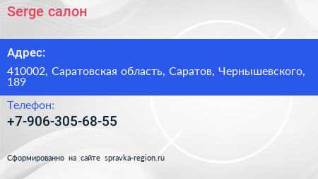 Serge, салон по адресу 410002, Саратовская область, Саратов, Чернышевского, 189 в дальнейшем Организация, размещена в следующих категориях:
