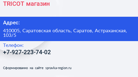 TRICOT, магазин по адресу 410005, Саратовская область, Саратов, Астраханская, 103/5 в дальнейшем Организация, размещена в следующих категориях: