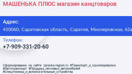 МАШЕНЬКА ПЛЮС, магазин канцтоваров по адресу 410060, Саратовская область, Саратов, Миллеровская, 62а в дальнейшем Организация, размещена в следующих категориях: