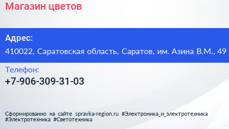 Магазин цветов по адресу 410022, Саратовская область, Саратов, им. Азина В.М., 49 в дальнейшем Организация, размещена в следующих категориях: