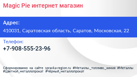 Magic Pie, интернет-магазин по адресу 410031, Саратовская область, Саратов, Московская, 22 в дальнейшем Организация, размещена в следующих категориях: