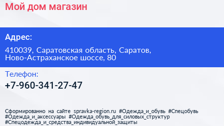 Мой дом, магазин по адресу 410039, Саратовская область, Саратов, Ново-Астраханское шоссе, 80 в дальнейшем Организация, размещена в следующих категориях: