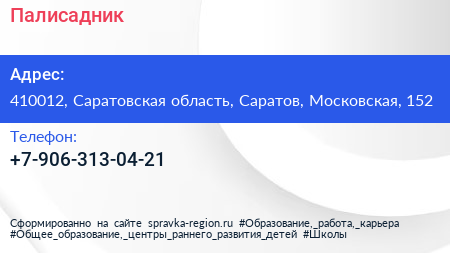 Палисадник по адресу 410012, Саратовская область, Саратов, Московская, 152 в дальнейшем Организация, размещена в следующих категориях:
