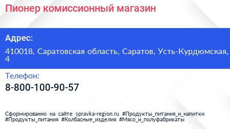 Пионер, комиссионный магазин по адресу 410018, Саратовская область, Саратов, Усть-Курдюмская, 4 в дальнейшем Организация, размещена в следующих категориях: