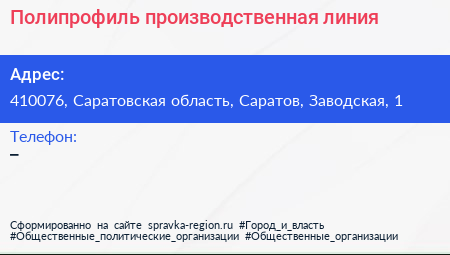 Полипрофиль, производственная линия по адресу 410076, Саратовская область, Саратов, Заводская, 1 в дальнейшем Организация, размещена в следующих категориях: