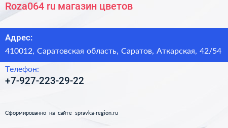 Roza064.ru, магазин цветов по адресу 410012, Саратовская область, Саратов, Аткарская, 42/54 в дальнейшем Организация, размещена в следующих категориях: