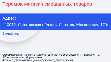 Теремок, магазин смешанных товаров по адресу 410012, Саратовская область, Саратов, Московская, 170г в дальнейшем Организация, размещена в следующих категориях: